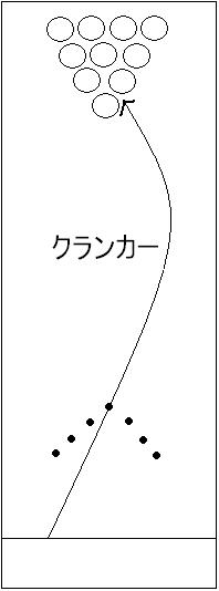 途中で、ボールが徐々に回転方向に曲がり始める所をフックゾーンといいます