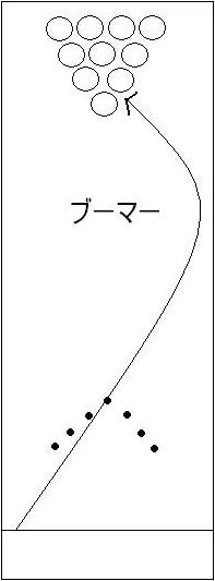 途中で、ボールが徐々に回転方向に曲がり始める所をフックゾーンといいます
